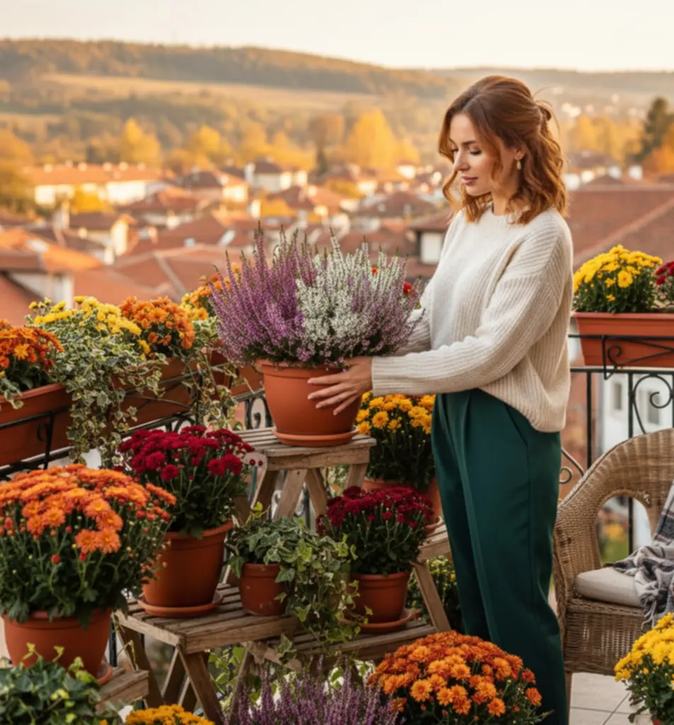 Допълнителен съвет е да включиш и сезонни аксесоари като малки тикви, декоративни шишарки или сухи клонки между растенията. Те ще подчертаят есенния характер на подредбата и ще добавят още един слой декоративност, без да натоварват визуално композицията. Комбинирането на височини, цветове и текстури е най-ефективният начин да постигнеш балкон, който изглежда пъстър, уютен и жив дори в по-кратките и хладни есенни дни.