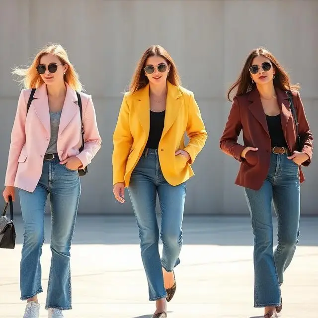 • Възможност за изразяване на индивидуалност – чрез избор на цветове, кройки, текстури и аксесоари можете да придадете на визията свой характер. Например ярко сако или блейзър с интересна кройка върху класически дънки веднага създава модерен и свеж образ. Добавянето на чанта, колан, обувки или брошка прави визията уникална и запомняща се.
